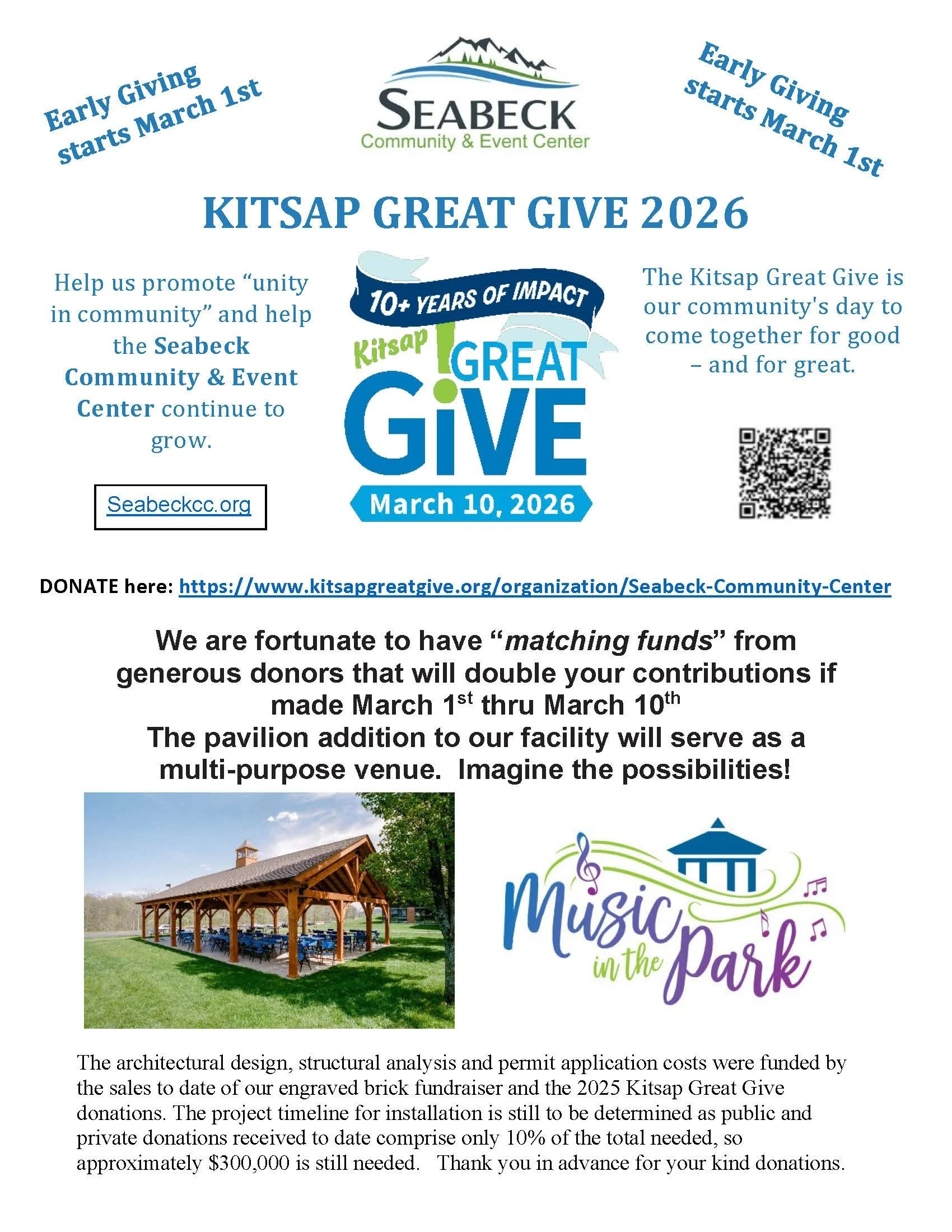 Click here to Donate: https://www.kitsapgreatgive.org/organization/Seabeck-Community-Center