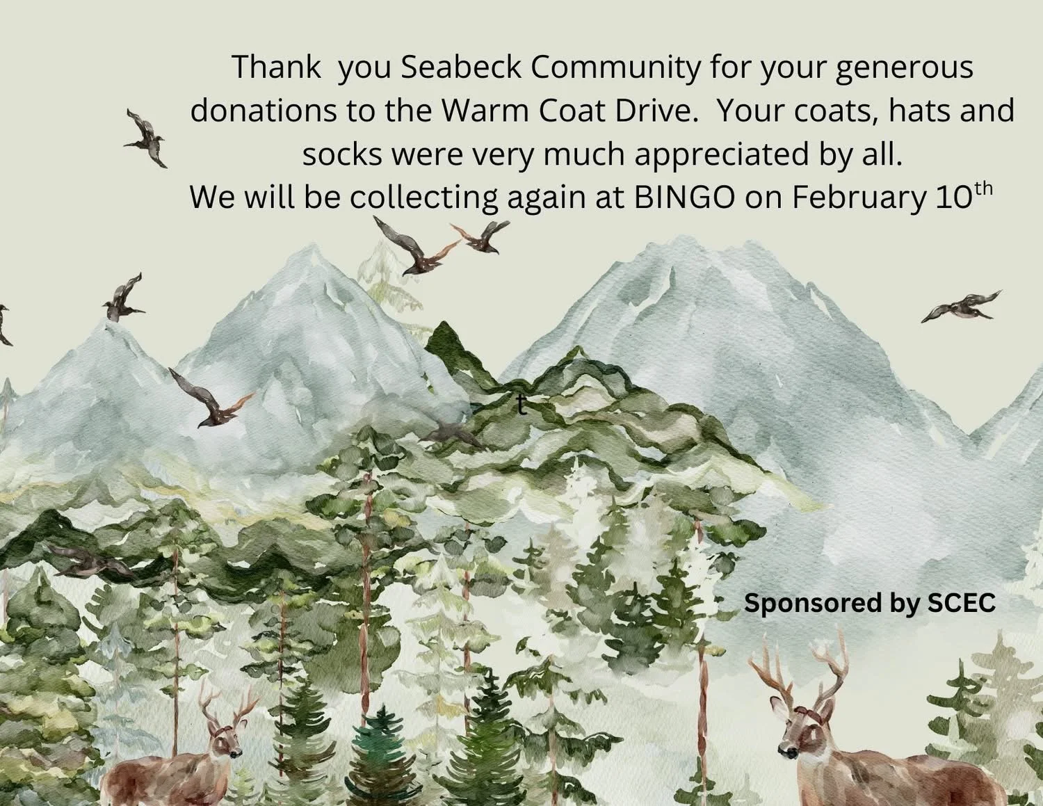 Help our Seabeck neighbors in need. Bring to BINGO night FEBRUARY 10th. Stay for Bingo and have some fun or stop by between 6:30 - 8:30 to drop off your donations. A box will be in the entryway of the SCEC. Other times to drop off: Saturdays 9am-10am, Sundays 8:30am -9:30am, Wednesdays and Thursdays 6pm-7:30pm. Please be aware that during these times we have activities going on, so be courteous of those inside renting the space. Thank You